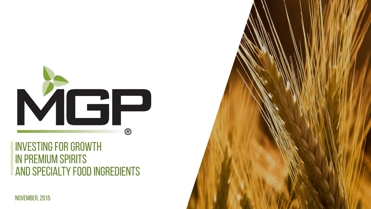 Certain of the comments made in this presentation and in the question and answer session that follows may contain forward-looking statements in relation to operations, financial condition and operating results of MGP Ingredients, Inc. and such statements involve a number of risks and uncertainties. These statements reflect management’s views as of today and we do not undertake any obligation to update them. We wish to caution you that these statements are only estimates and that actual results may differ materially from those projected in the forward-looking statements. Additional information concerning factors that could cause actual results to materially differ from those in the forward-looking statements is contained in Item 1A Risk Factors of our Annual Report on Form 10-K for the period ending December 31, 2014 as updated by Item 1A. Risk Factors in subsequent Quarterly Reports on Form 10-Q for the quarters ended June 30, 2015 and September 30, 2015.